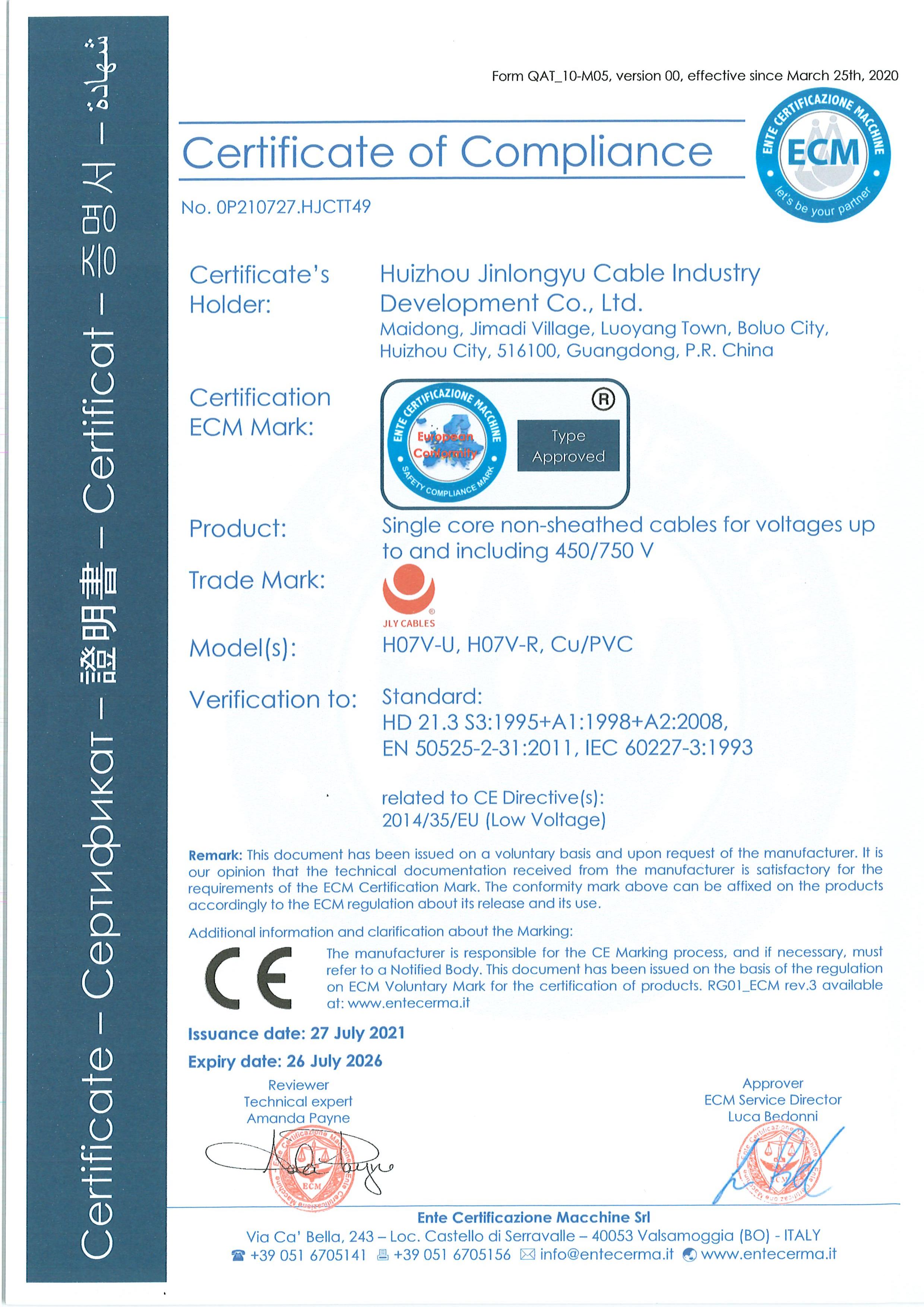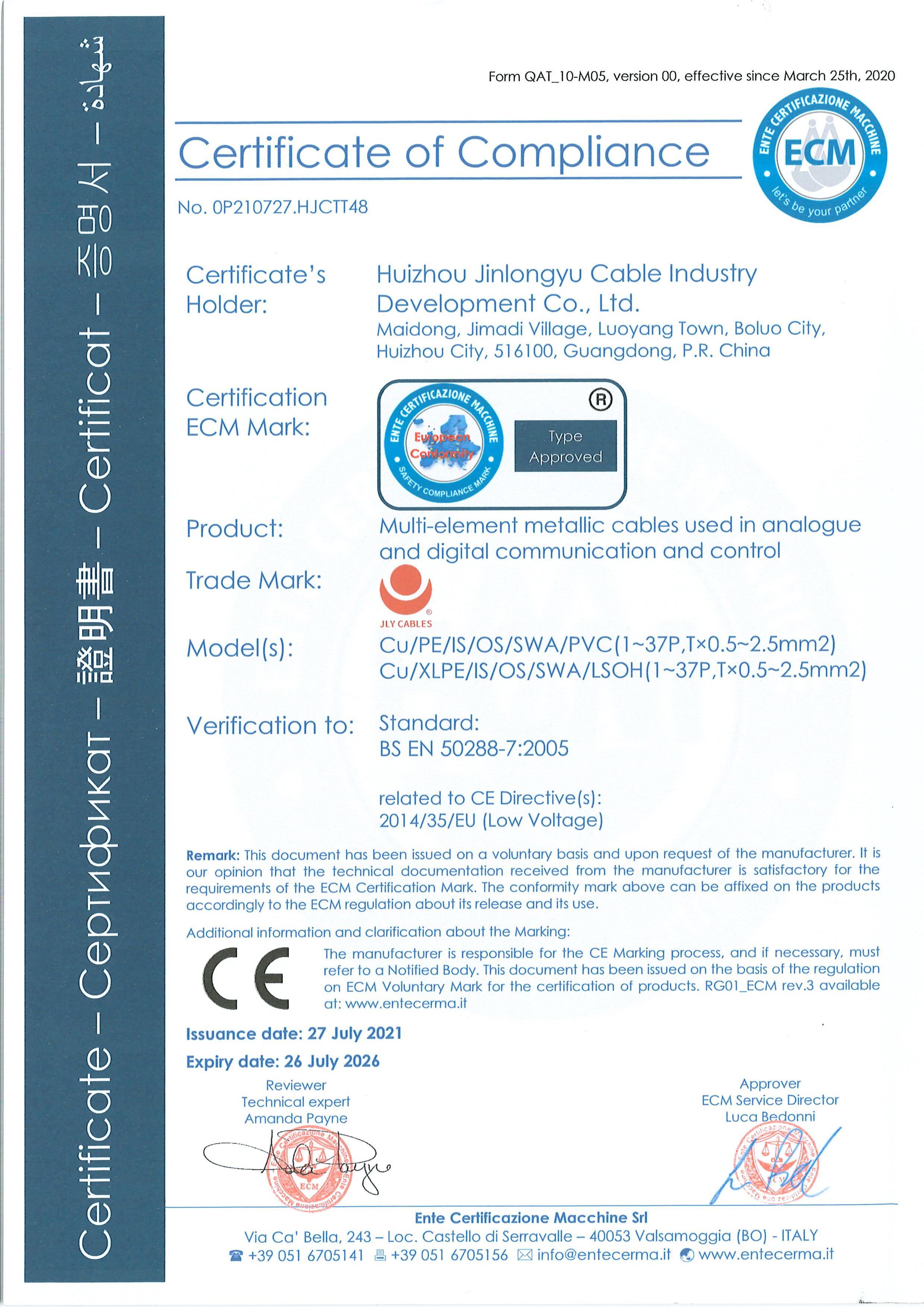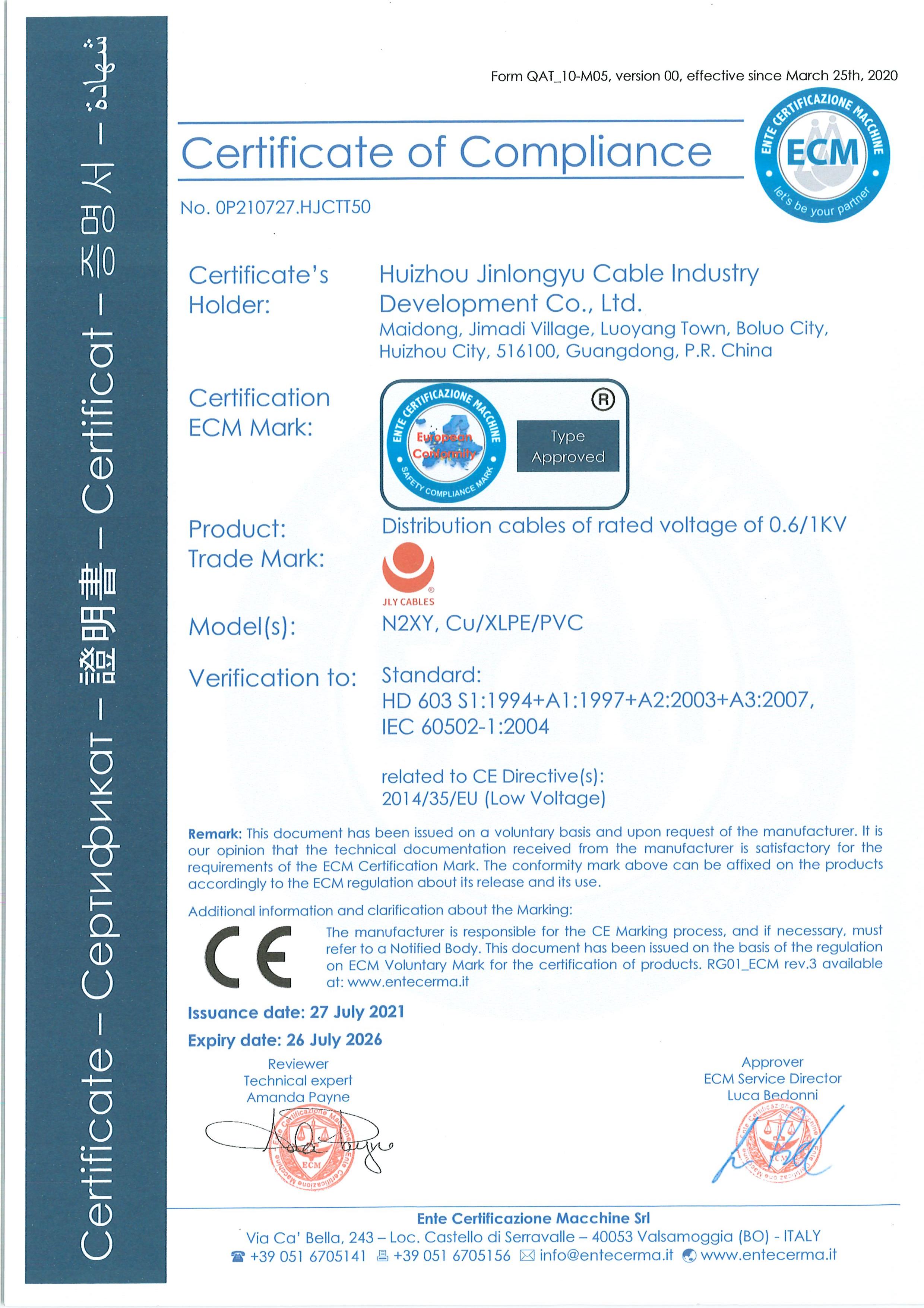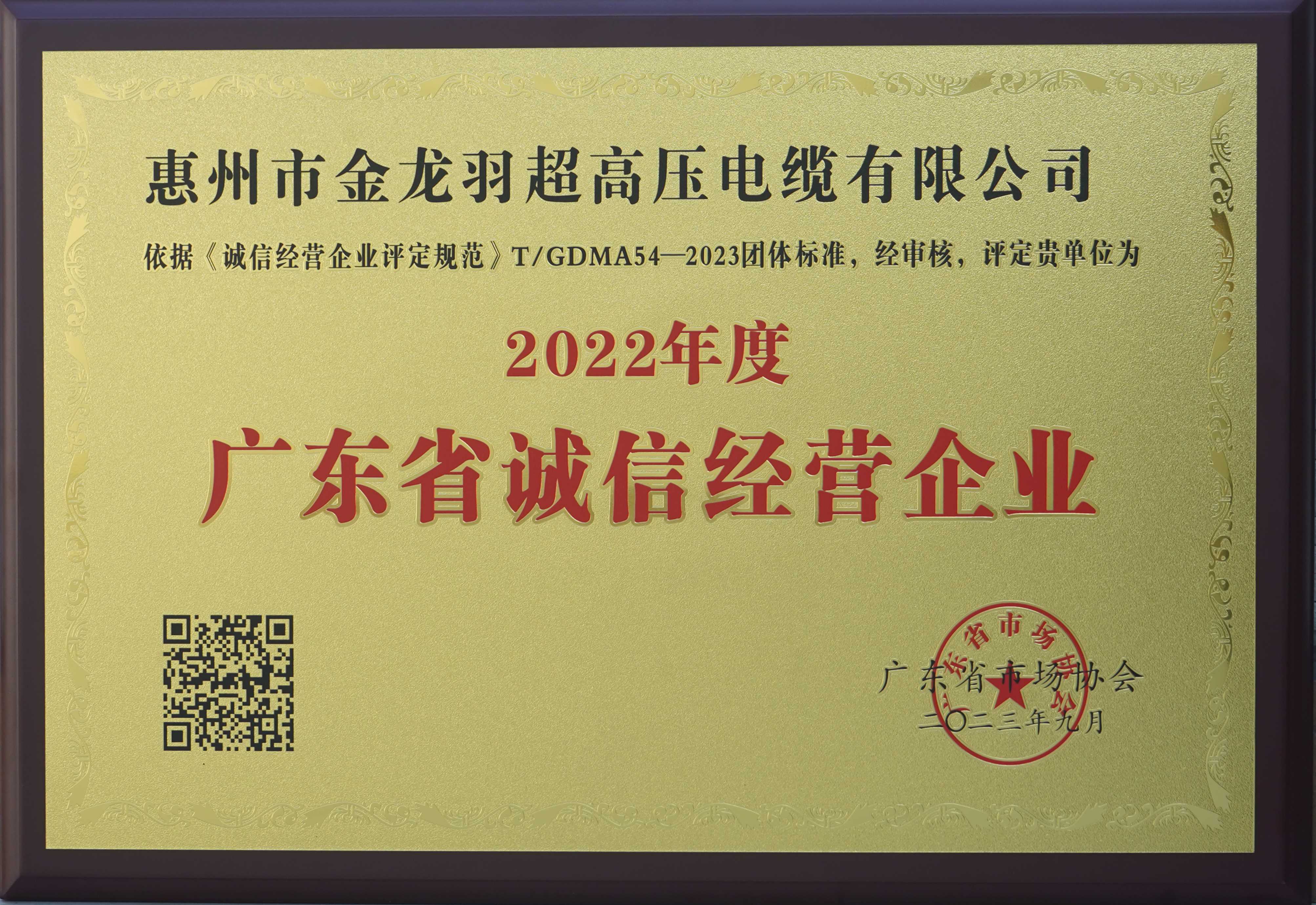 2022年度广东省诚信经营企业-惠州市金龙羽超高压电缆有限公司
