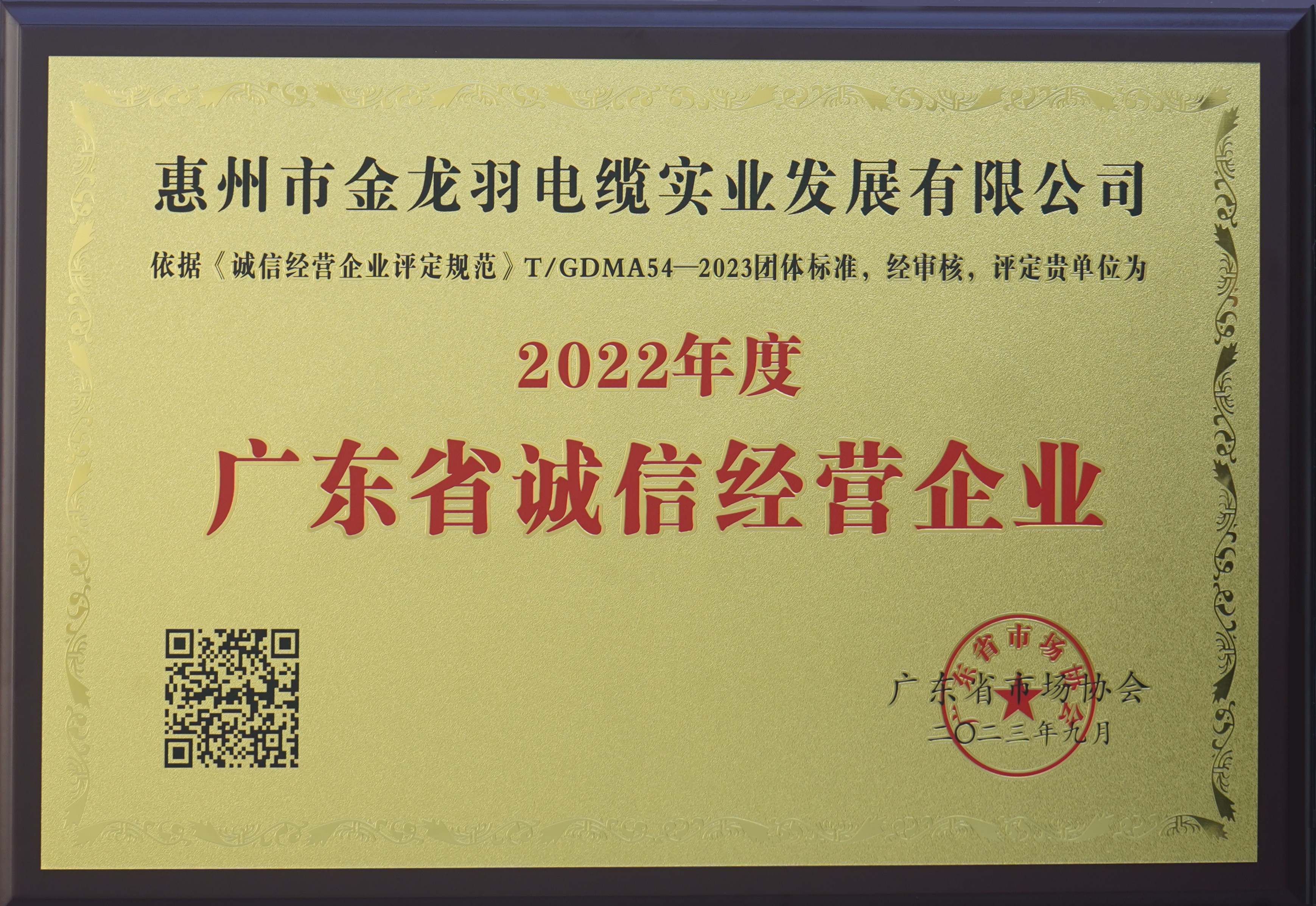 2022年度广东省诚信经营企业-惠州市金龙羽电缆实业发展有限公司