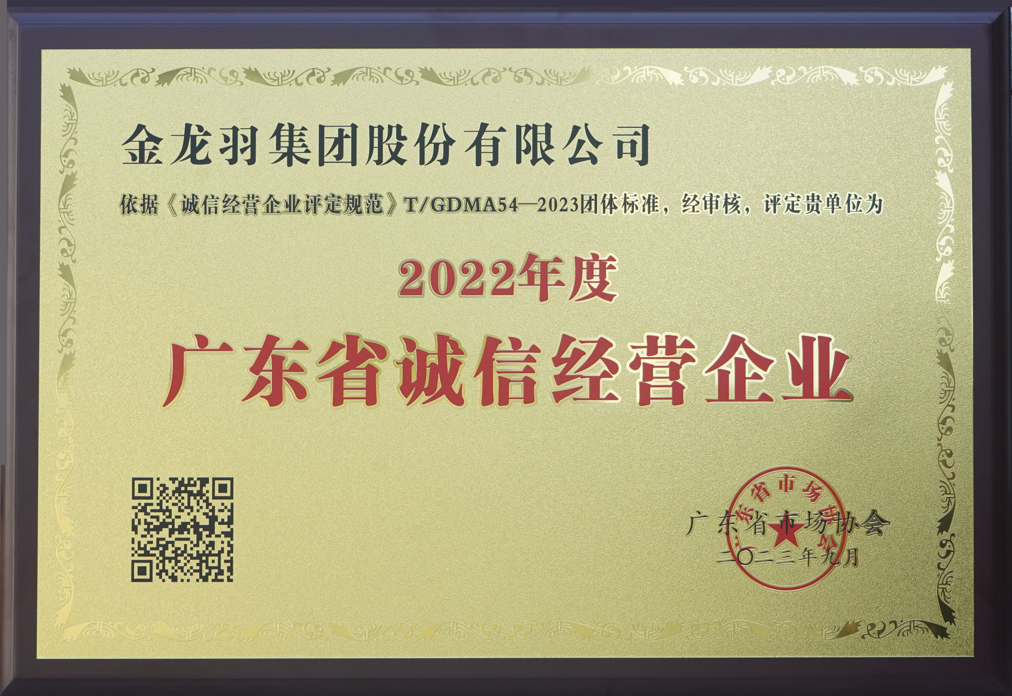 2022年度广东省诚信经营企业-金龙羽集团股份有限公司