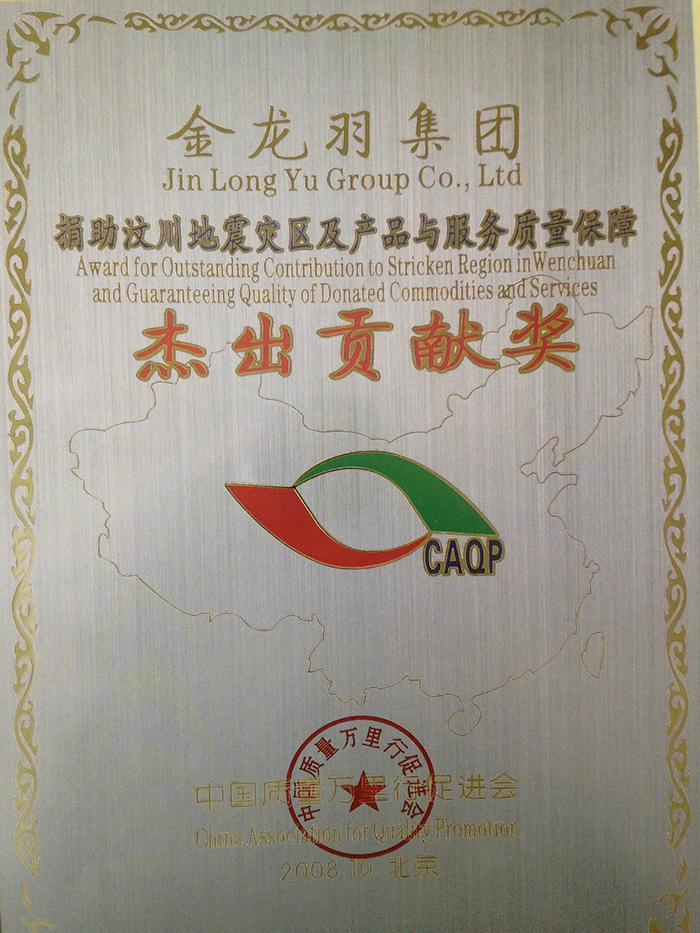 捐助汶川地震灾区及产品与服务质量保障杰出贡献奖