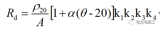 式中 Rd——单位长度电缆导体在℃时的直流电阻,Ω;